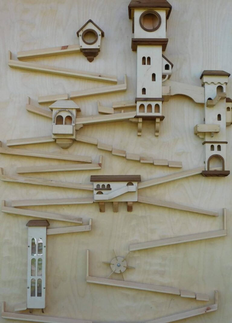 Kézműves, aprólékos munkával készült egyedi darabok. Jellemzően a táblák tetején van egy indítóelem, attól függően, hogy ennek melyik nyílásán dobja be a gyerkőc a kis üveggolyót, az más és más úton ér le a golyógurító aljára. Közben több különböző trükkös állomáson halad át. Ezek közt vannak mozgó vagy interaktív részek is,